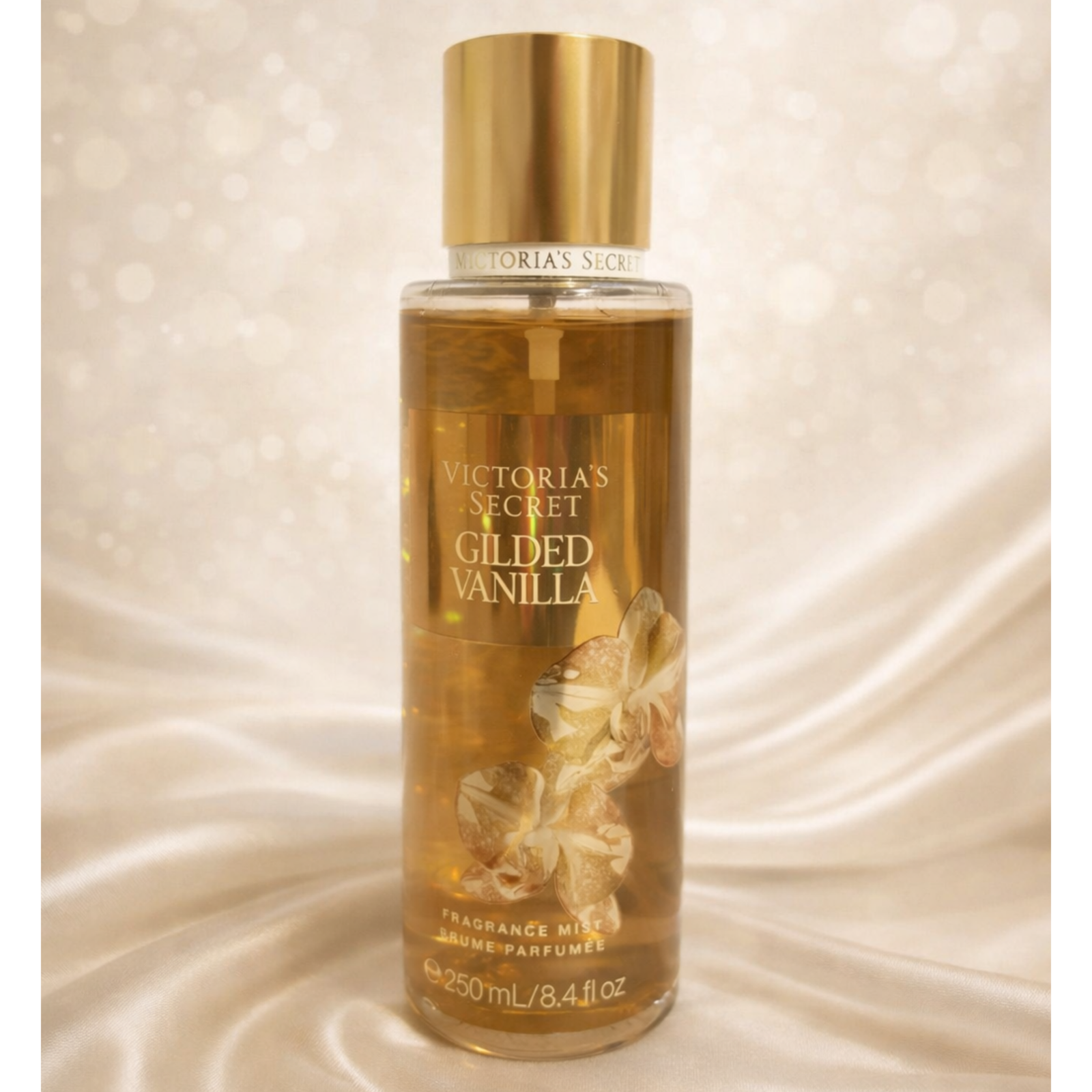 Sofisticada, cálida y profundamente femenina. Eleva la vainilla clásica con un toque dorado y elegante que se siente lujoso y envolvente. No es vainilla juvenil ni simple: es cremosa, cálida y refinada. Perfecta para quien ama los aromas dulces con presencia y elegancia. Es como vainilla bañada en oro suave. Intensidad media, estela dulce cremosa cálida y elegante.